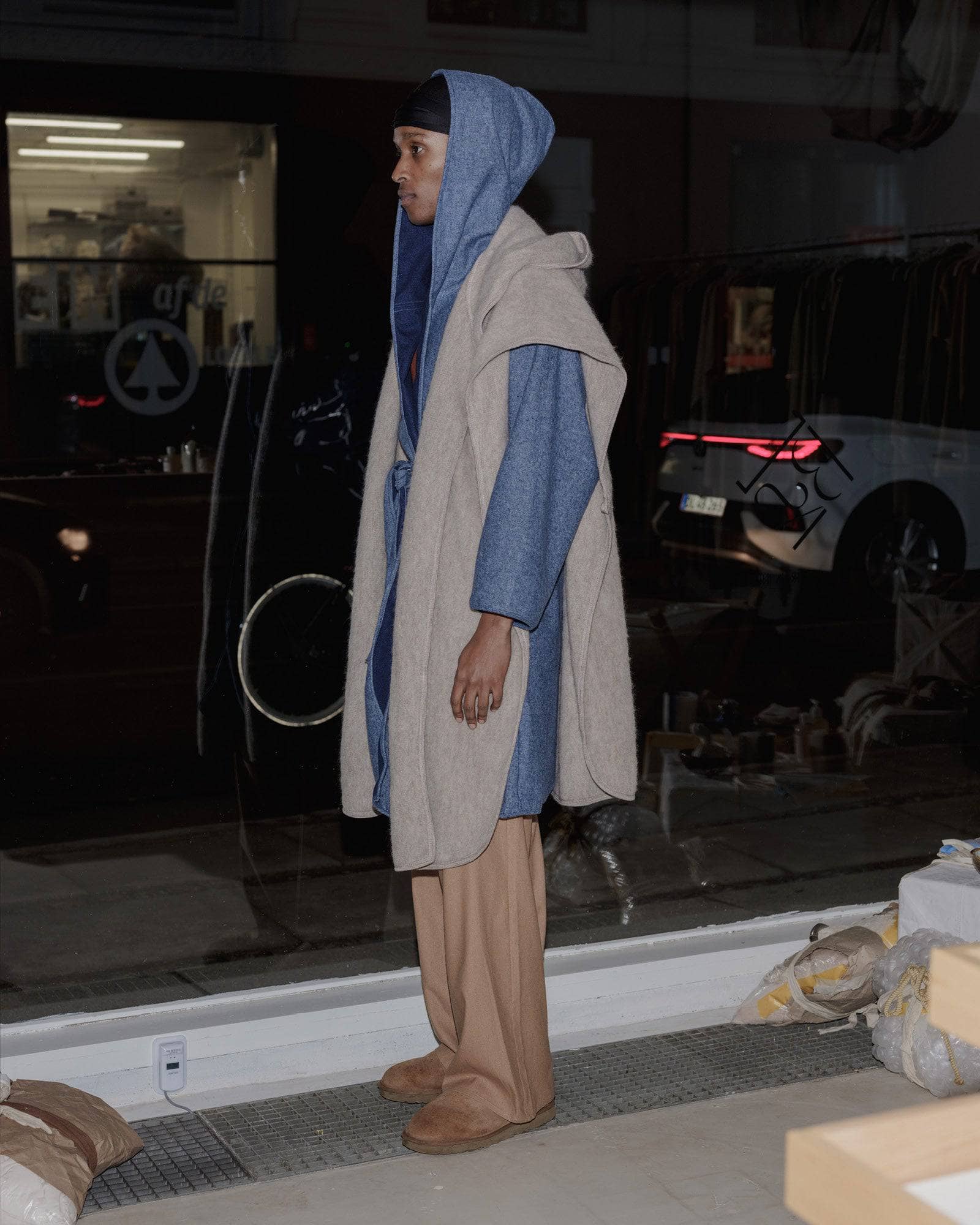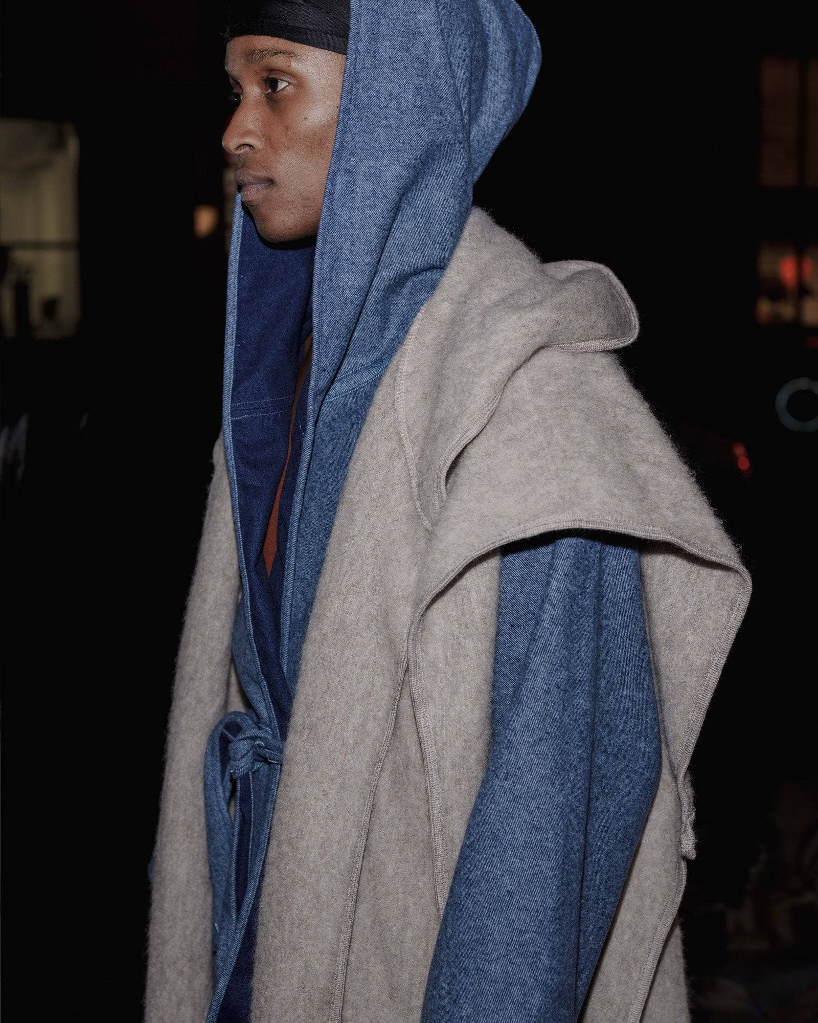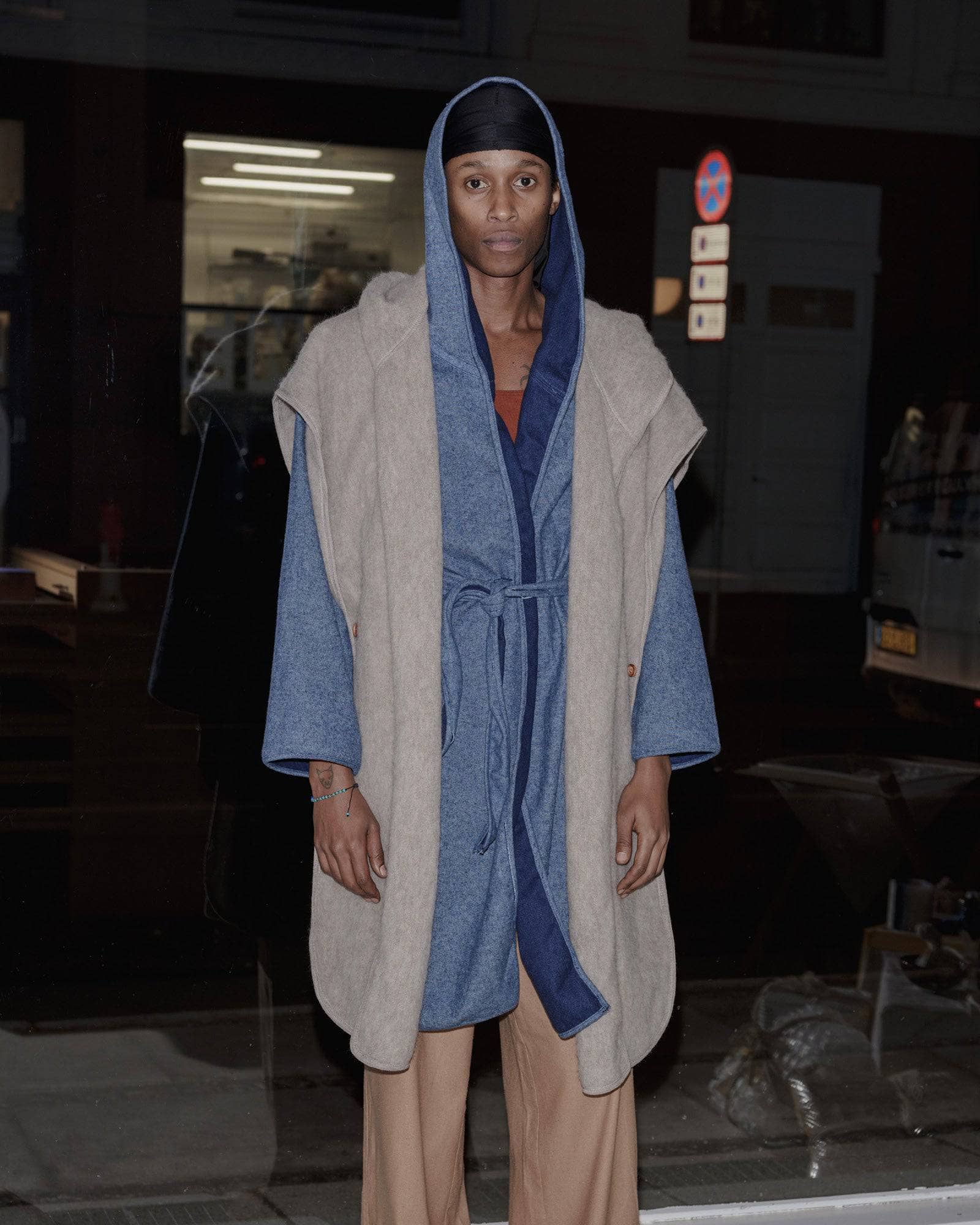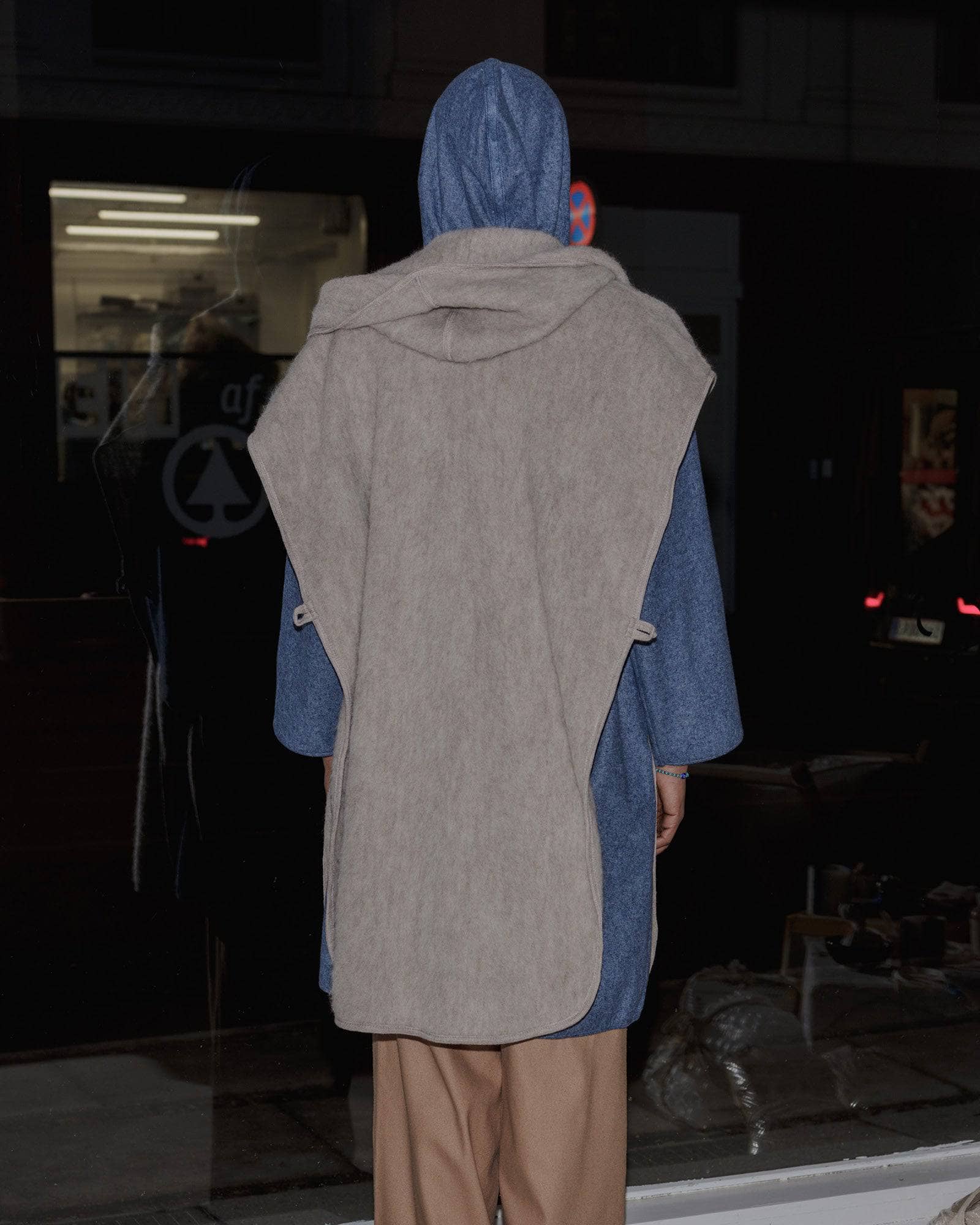 Brushed wool cape with hood