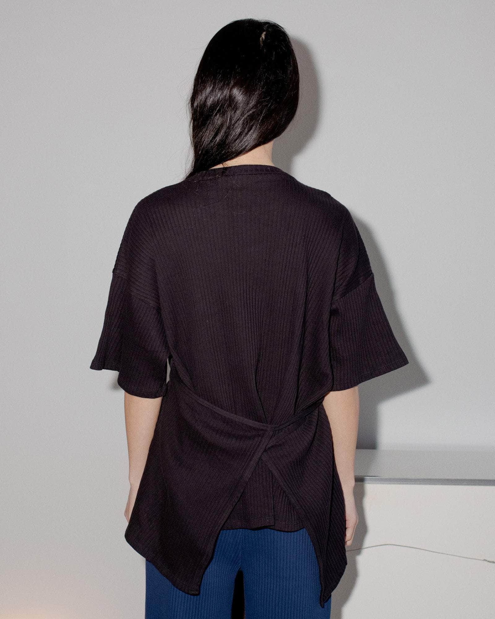 Geripptes Baumwolljersey Kurzarm-Wickeloberteil