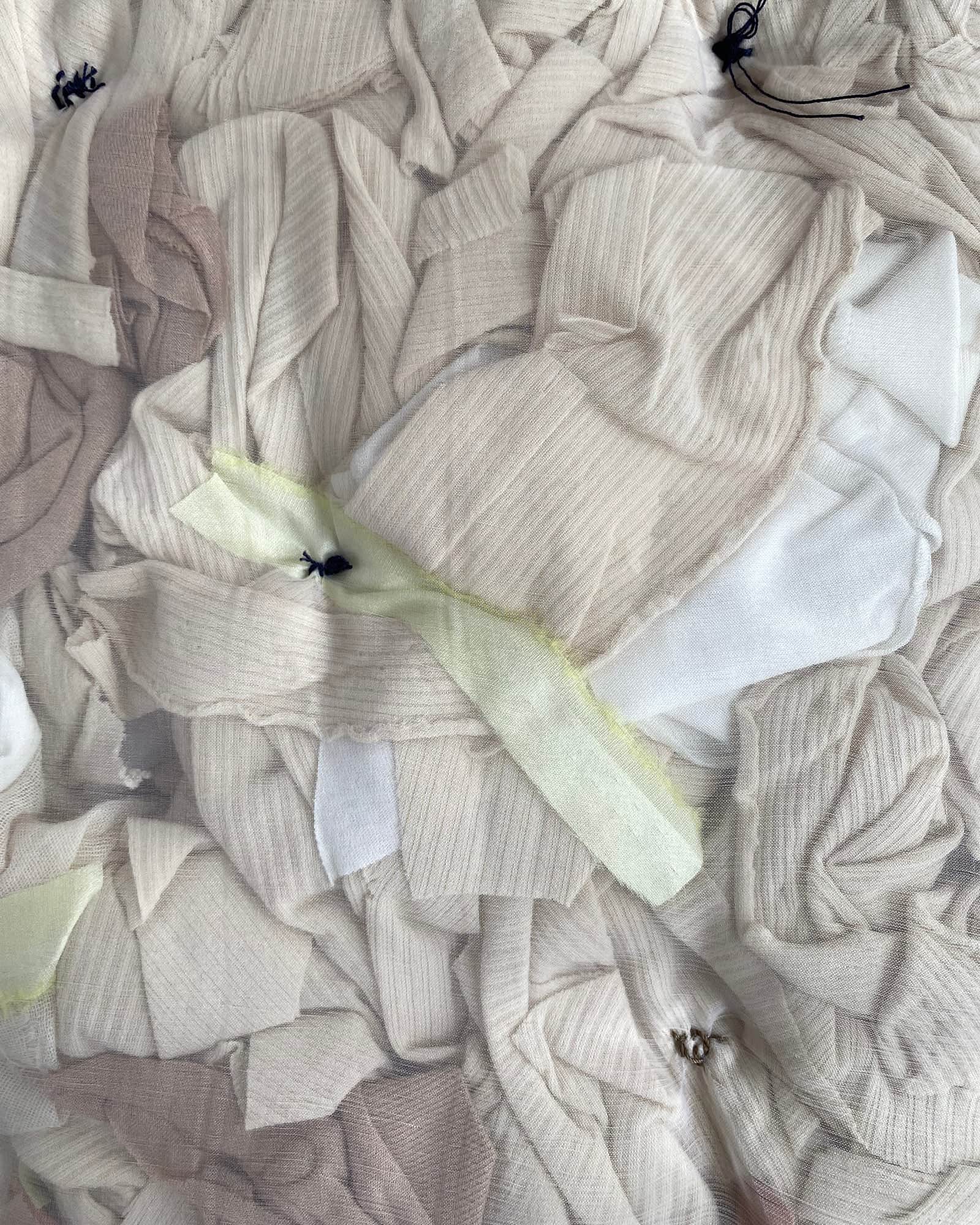 - Il y a toujours 10 à 30 % de tissu qui est coupé et jeté pendant le processus de coupe. Ces leftovers de tissu ne sont en aucun cas endommagés mais sont trop petits pour une production à grande échelle.