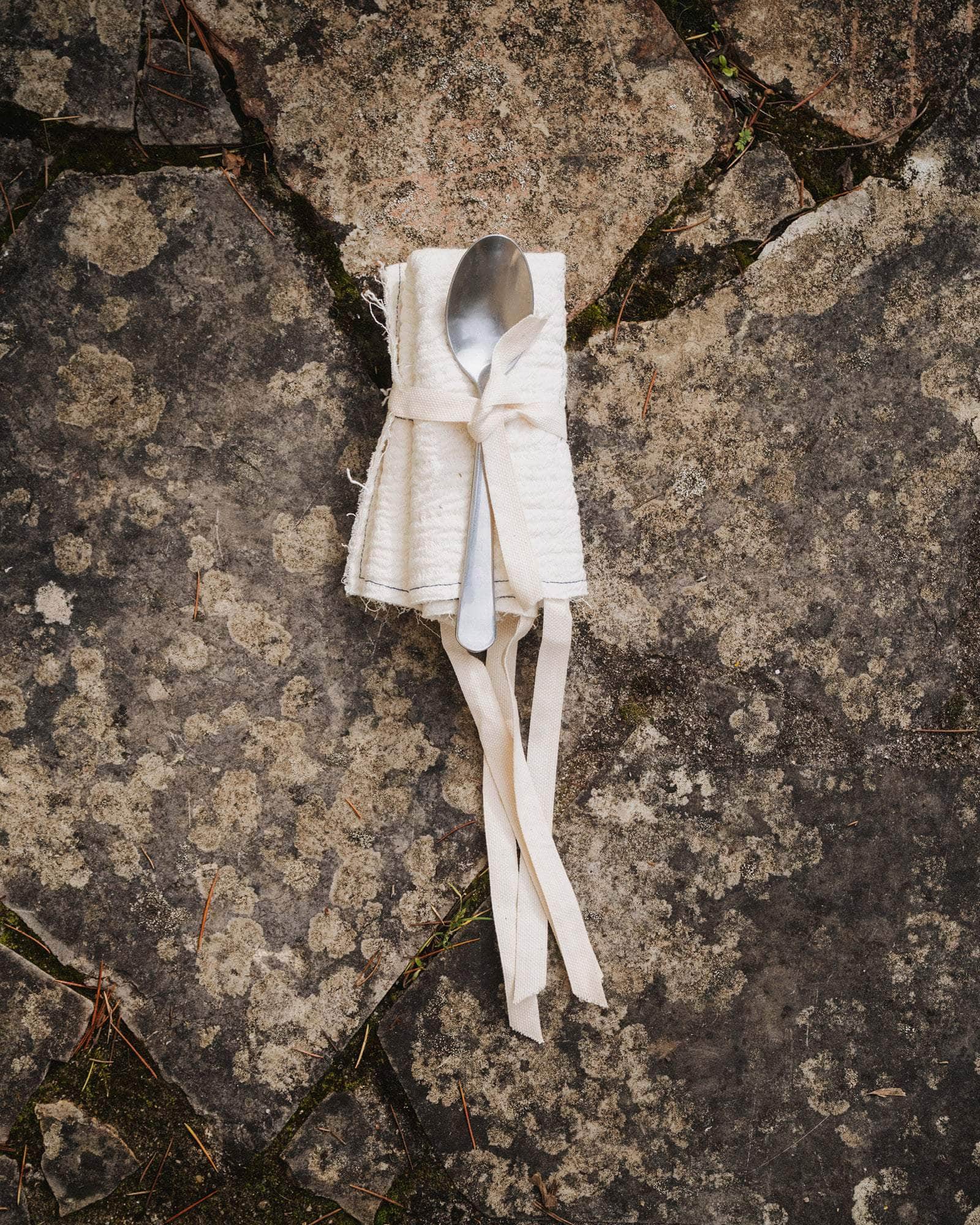Peut être laissé dénoué pour servir de dessous de plat, de set de table ou de tapis de séchage.