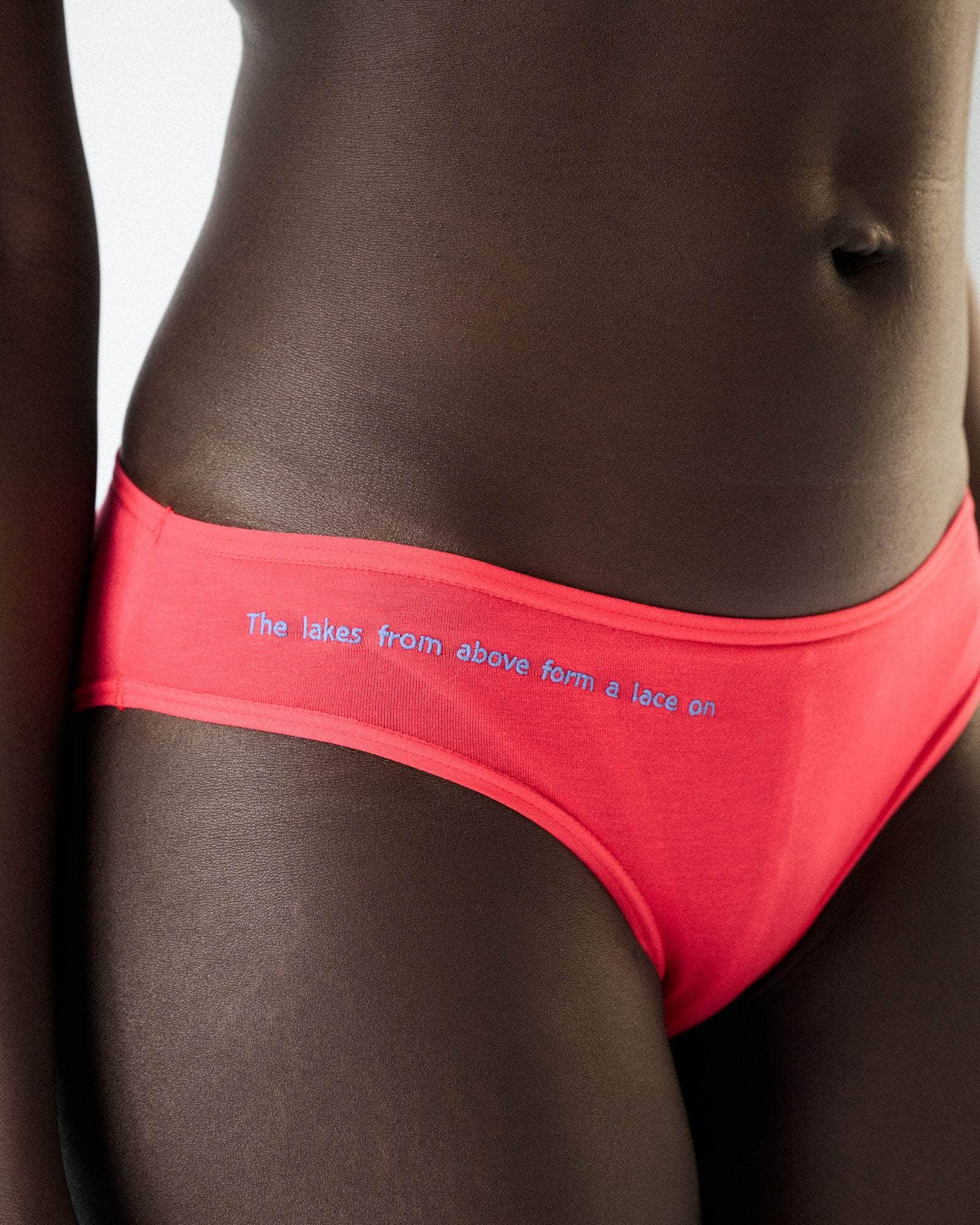 자수된 텍스트에는 "위의 호수는 걸을 수 있는 레이스를 형성합니다"라고 적혀 있습니다.