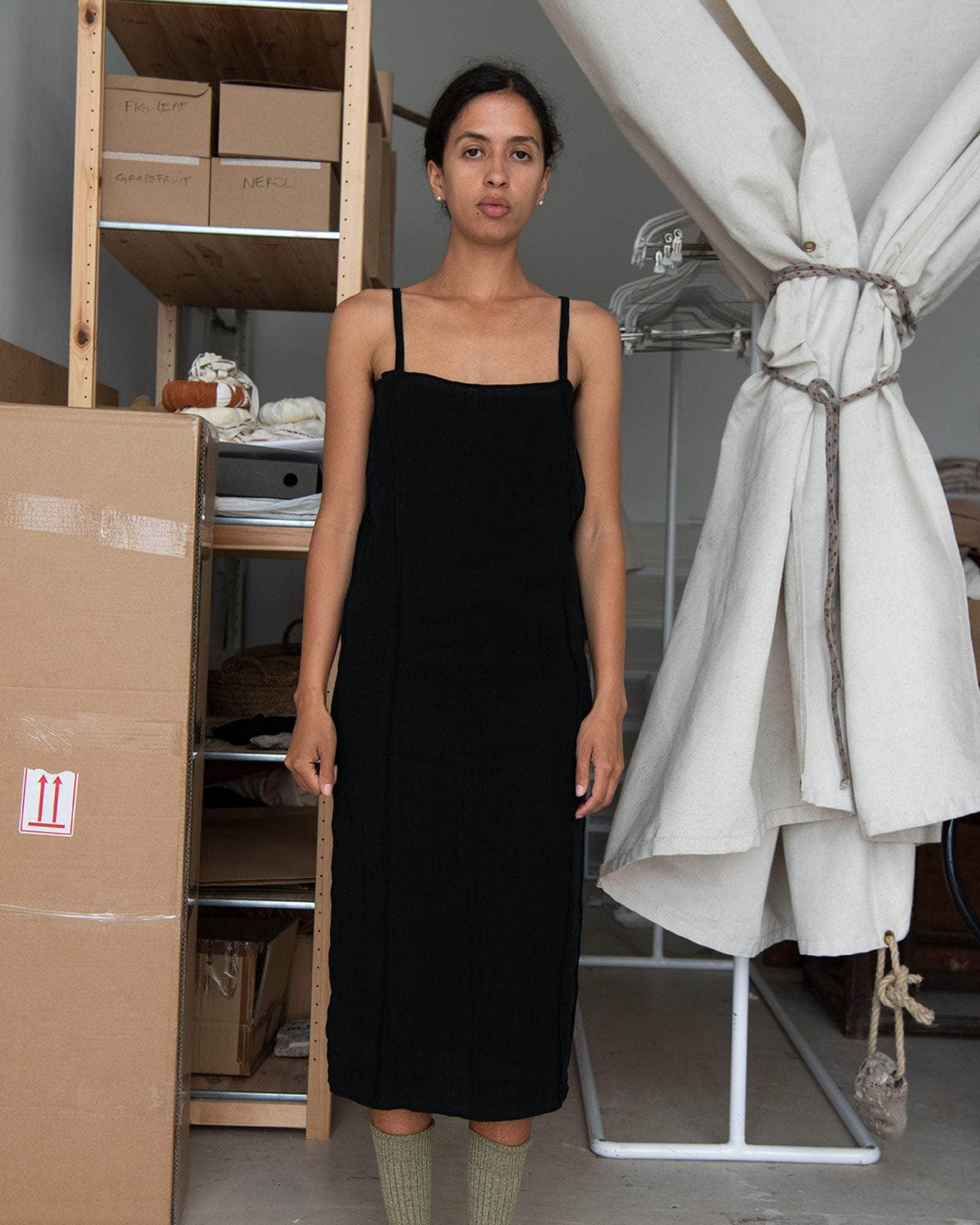 We recommend washing at a maximum of 30°C and a gentle cycle, as heat and friction wear the fabric down. The gentle cycle also helps reduce creases. Wash with other delicate fabrics to avoid friction. Turn colored garments inside out to preserve the color. Avoid fabric softener, as this can hinder the natural properties of the fabric, and linen naturally gets softer over time. Remove stains as soon as you get them, as linen absorbs stains more than synthetic fabrics. Don’t use bleach as it can damage the fabric and leave a spot, even if the fabric is white.