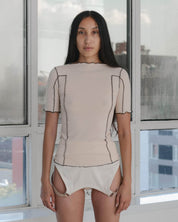 Biologische katoenen rib T-shirt met driekwartmouwen