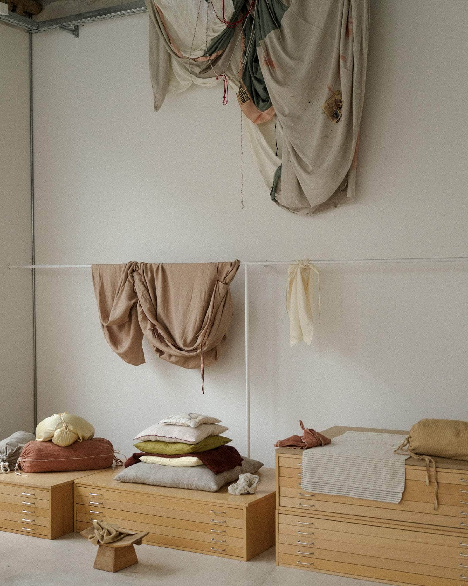 In our home collection, we explore the question, “What is a home?” The collection developed from different ways of viewing a home. The hemp and wool fabric in this collection is sourced from a collective reviving the local hemp industry in Occitania, France. Our linen fabric is grown, spun and woven in the area, and a selection of pieces are dyed with the natural dye woad.