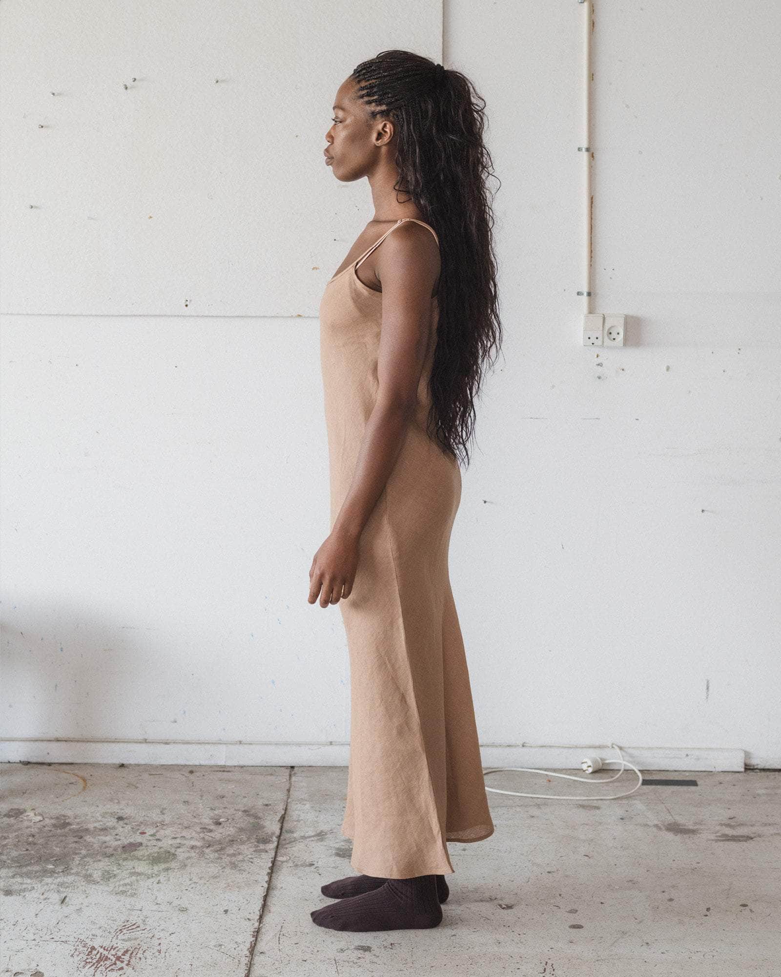 We recommend washing at a maximum of 30°C and a gentle cycle, as heat and friction wear the fabric down. The gentle cycle also helps reduce creases. Wash with other delicate fabrics to avoid friction. Turn colored garments inside out to preserve the color. Avoid fabric softener, as this can hinder the natural properties of the fabric, and linen naturally gets softer over time. Remove stains as soon as you get them, as linen absorbs stains more than synthetic fabrics. Don’t use bleach as it can damage the fabric and leave a spot, even if the fabric is white.