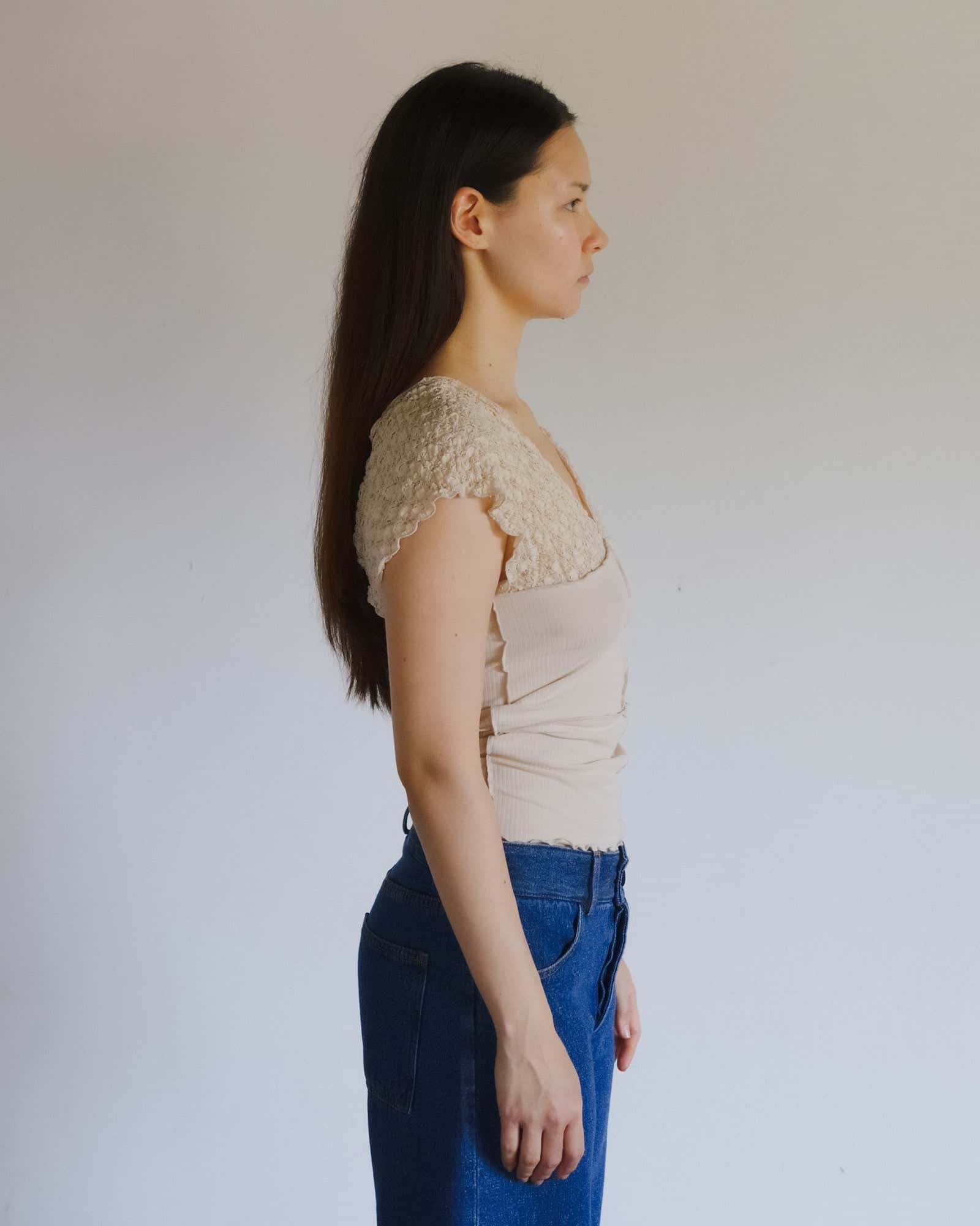 Organic cotton rib and lace tank
