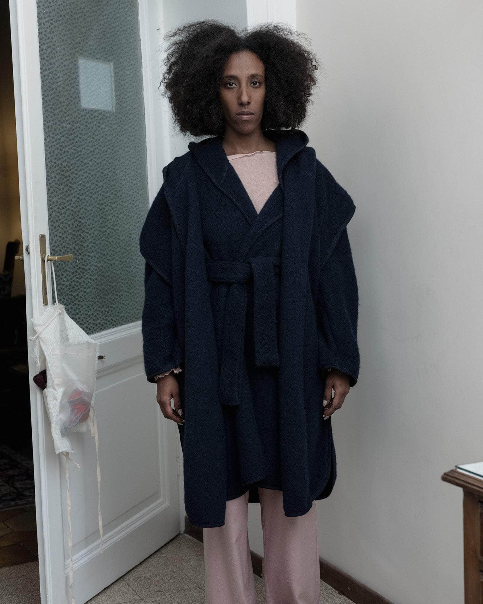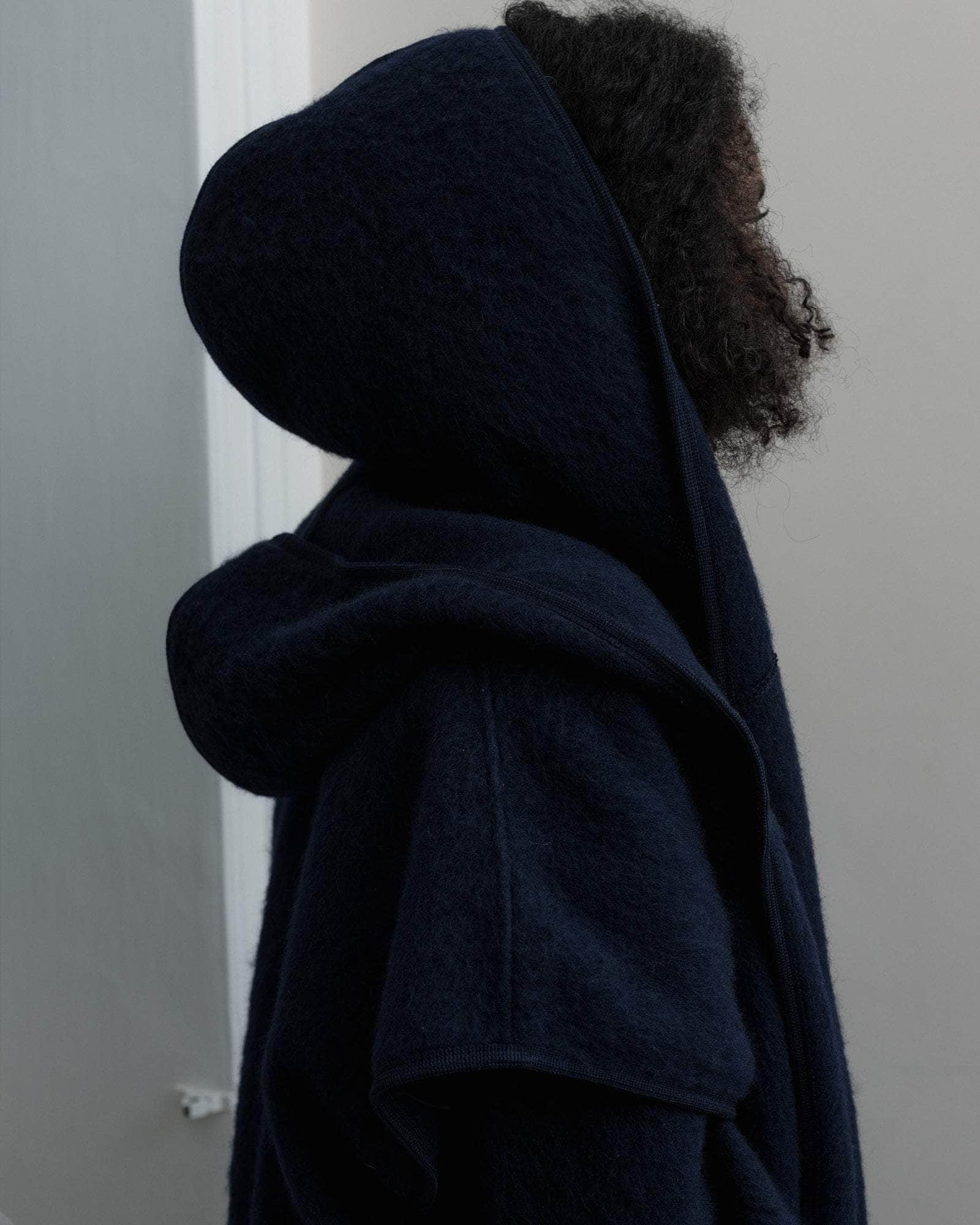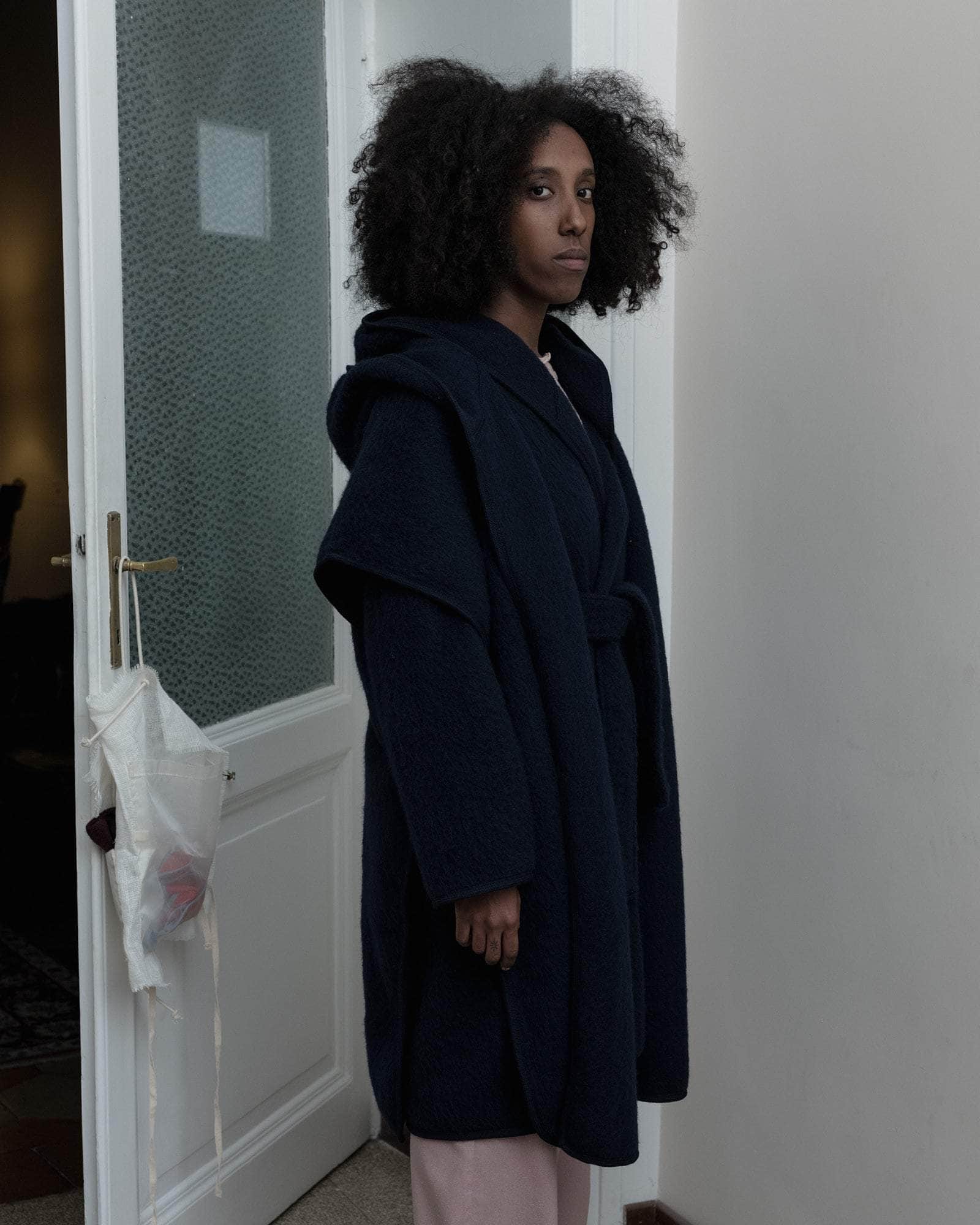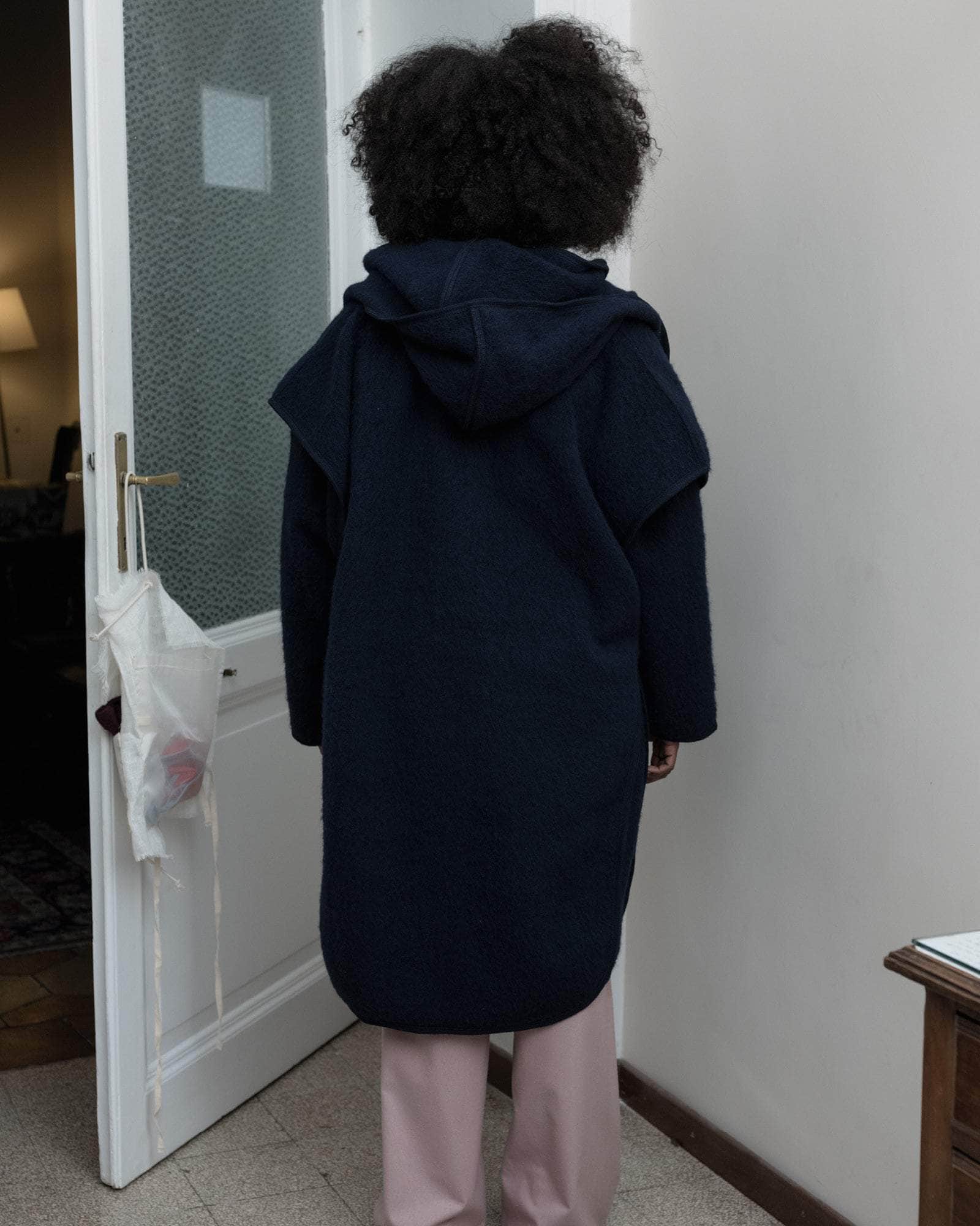 Brushed wool cape with hood
